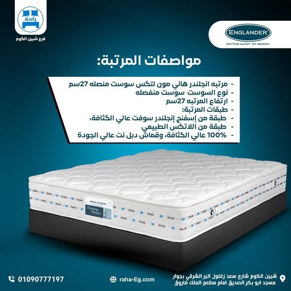 مرتبة إنجلندر هاني مون لاتكس – سوست منفصلة 27سم | Englander Honeymoon Latex Pocket Spring 27cm