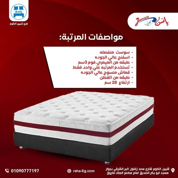 🧱 إسفنج يانسن سوبر سوفت + ممري فوم 4 سم لتخفيف الضغط وتحقيق راحة مثالية.